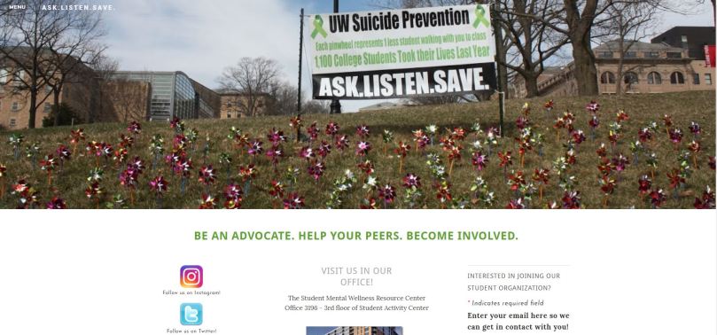 Benita created a new website for Ask.Listen.Save., a suicide prevention student organization at UW-Madison to show what the organization does and how students can become involved.